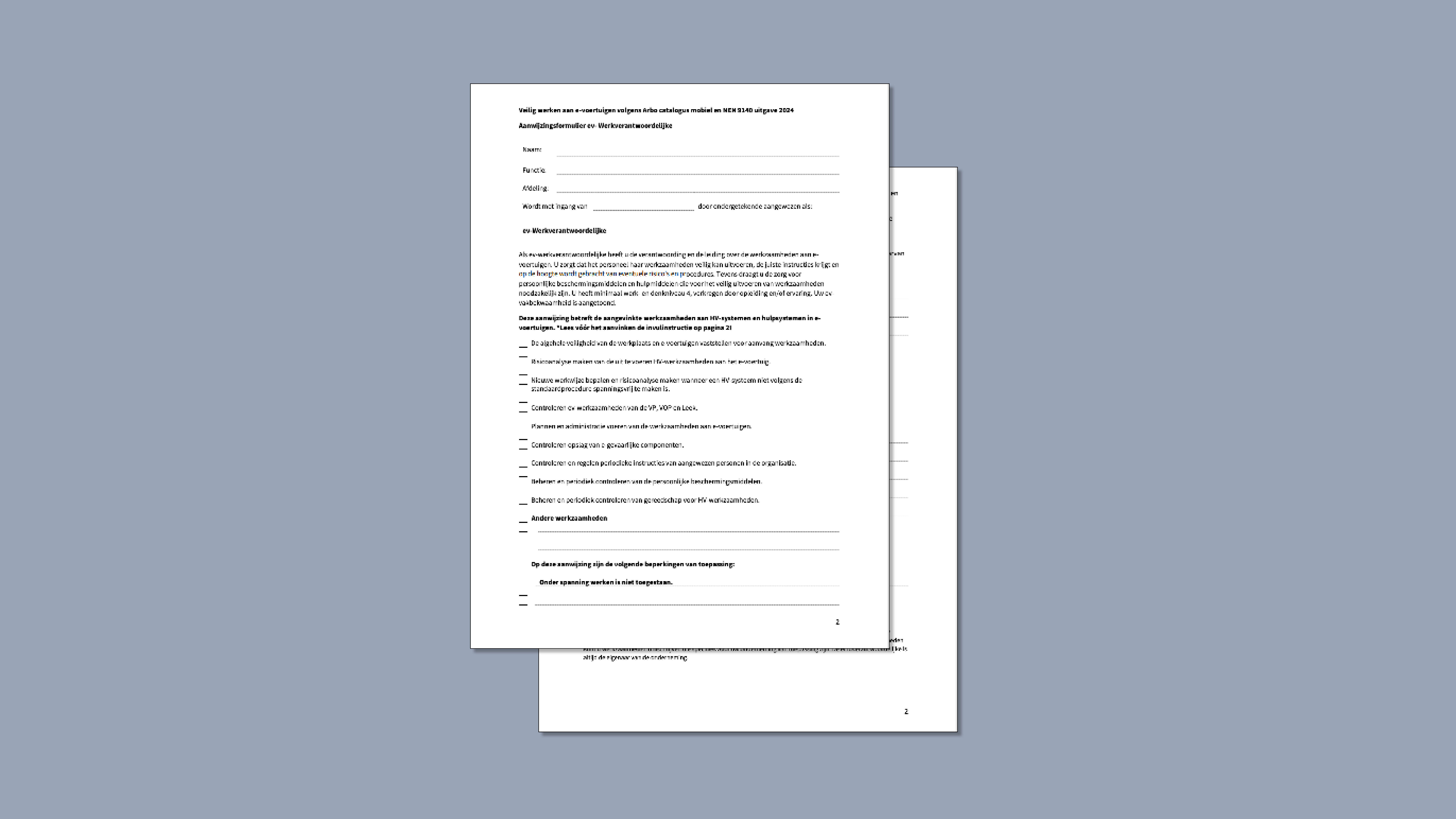 Bekijk en/of download via de onderstaande button het Aanwijzingsformulier ev-Werkverantwoordelijke.